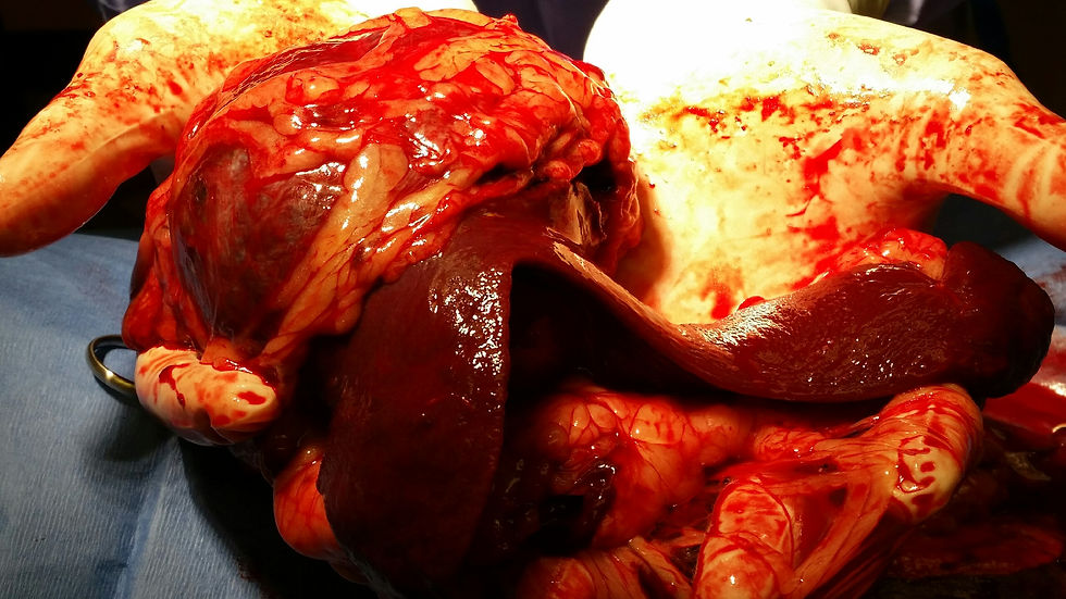 Samantha is a 12 year old, spayed female Pembroke Welsh Corgi who presented after the owner noticed she was getting a little fat. Samantha's case was unusual because she was eating and drinking and relatively acting normal. Samantha's radiograph's revealed that she was actually not gaining weight but rather her spleen had become very enlarged. Ultrasound confirmed that her spleen was in fact enlarged and that there was a large growth on one side. Her blood work, which included a complete blood count, chemistry and coagulation profile were all normal. Having an enlarged spleen is dangerous not only because the cause of enlargement could be a very aggressive cancer but also because it is very fragile and can rupture easily.
